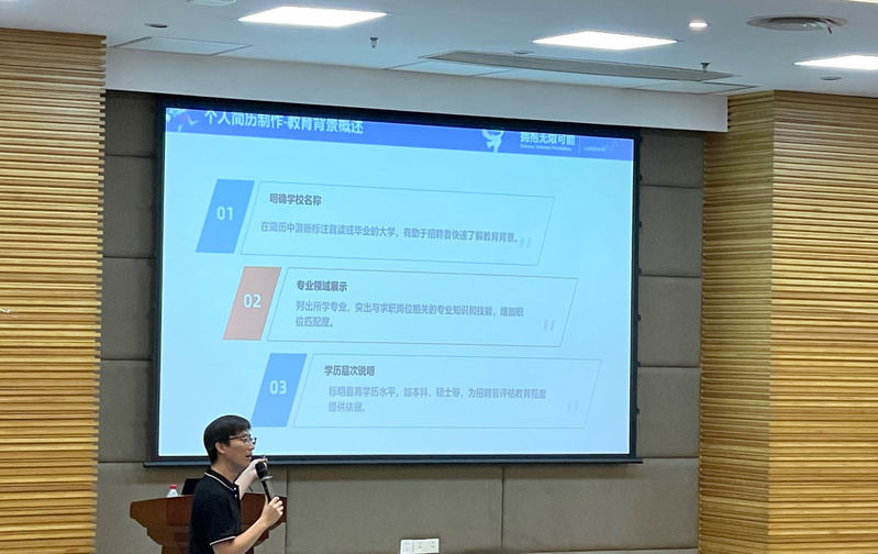 在簡歷制作環節,劉經理深入淺出,詳細闡述了簡歷撰寫中應包含的關鍵信息、各部分內容的規范格式及呈現技巧。他特別強調,一份亮點鮮明、結構清晰的簡歷是吸引面試官注意力的首要因素。因此,同學們不僅要扎實專業基礎,提升學習能力和實踐技能,勇于接受挑戰,積極參與社會實踐,不斷豐富個人實習經歷,更要學會巧妙地將自身優勢與特點通過簡歷這一窗口充分展現,為成功面試奠定堅實基礎。