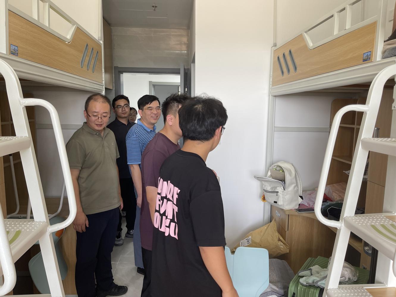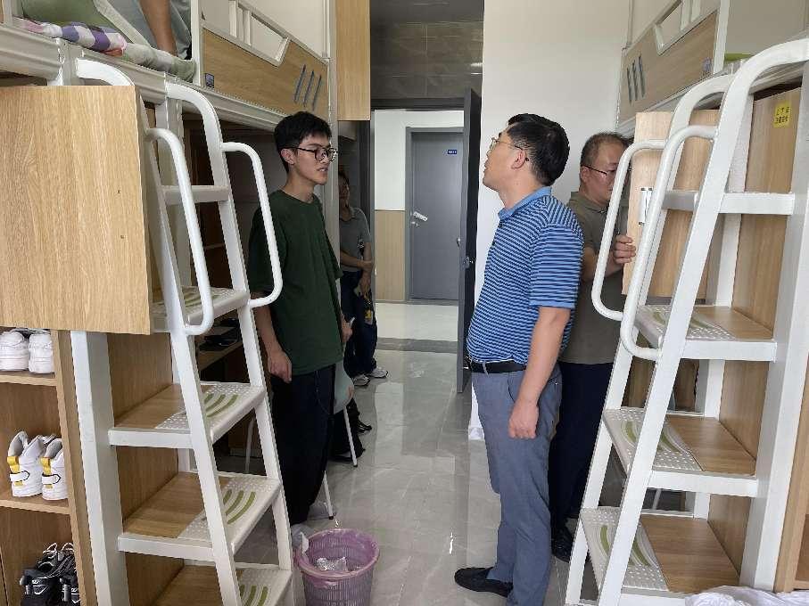 上午,領導們逐一走進新生宿舍。在宿舍內,翟純純書記和譚海波副書記細心詢問了新生們的入學報到手續辦理情況,從報到流程的便捷性到宿舍設施的完善度,事無巨細,一一了解并聽取反饋。翟書記特別強調了學院對于新生適應新環境的重視,他強調:“學院深知初來乍到的你們或許會有諸多不適應,但請放心,學院就是你們的堅強后盾。無論是學習上的困惑還是生活中的難題,我們都將全力以赴,為你們提供最堅實的支持。”