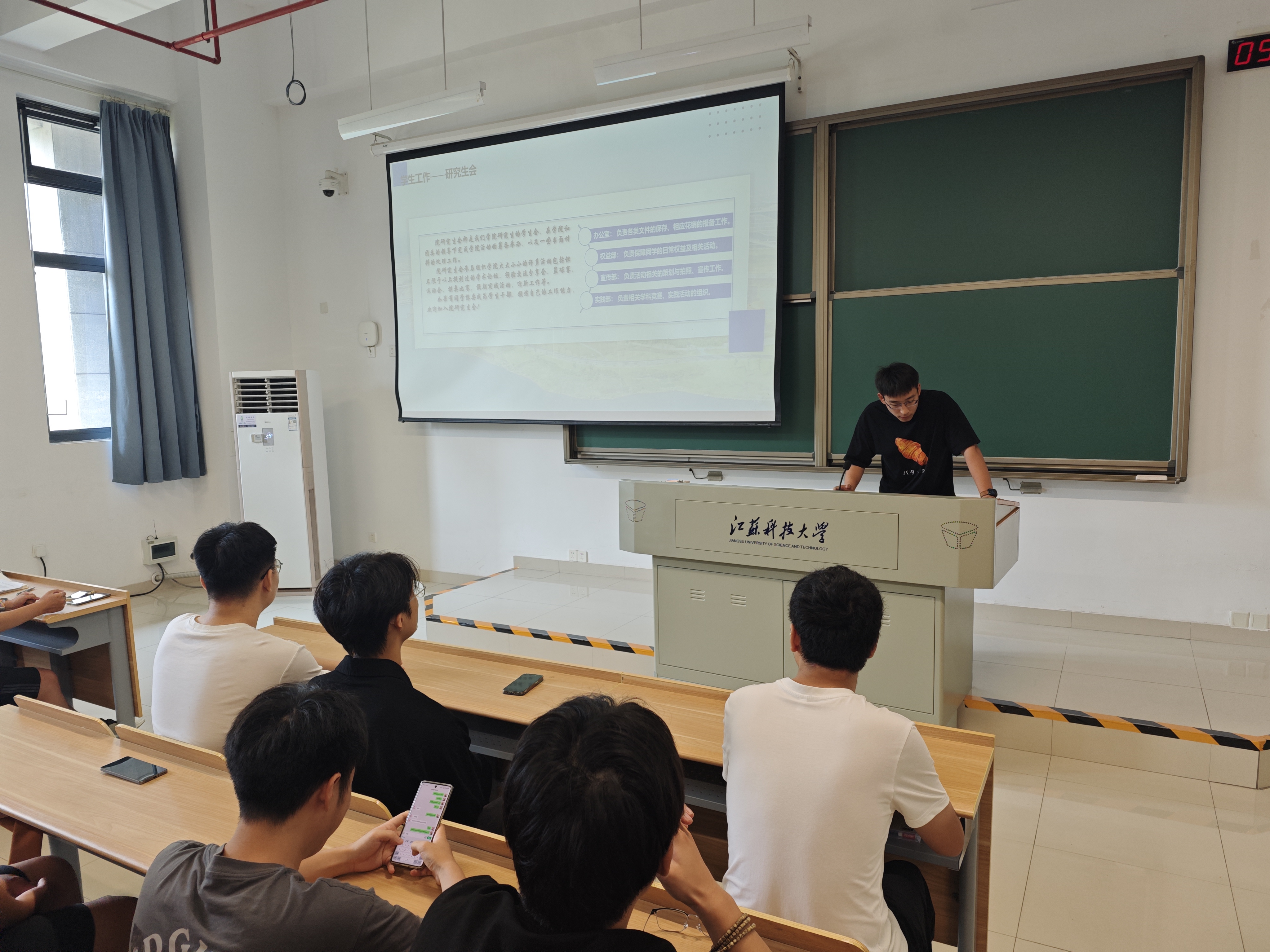 9 月12 日,江蘇科技大學機械工程學院的一場別開生面的學長經驗分享會在學院內熱烈舉行,為新入學的研究生們帶來了一場知識與經驗的盛宴。本次分享會由李南南輔導員主持,旨在幫助研究生新生更好地適應研究生生活,明確學習目標,掌握學習方法。