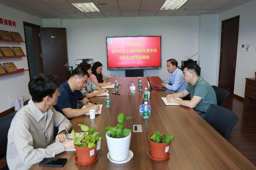 會上,向東校友以飽滿的熱情和嚴謹的態度,向與會領導詳細介紹了自己在重慶市總工會政策研究室的工作職責、主要研究成果以及當前的研究方向。他特別強調了在新質生產力的背景下,工會工作如何更好地服務職工、促進政策理論研究、統籌多方資源平臺、創新工會工作發展模式的重要性。在談到重慶與江蘇兩地工會工作的差異時,向東校友結合自身工作經驗,深刻剖析了兩地在地區特點、經濟環境、文化氛圍等方面的不同,并指出這些差異對工會工作提出了不同的挑戰和要求。