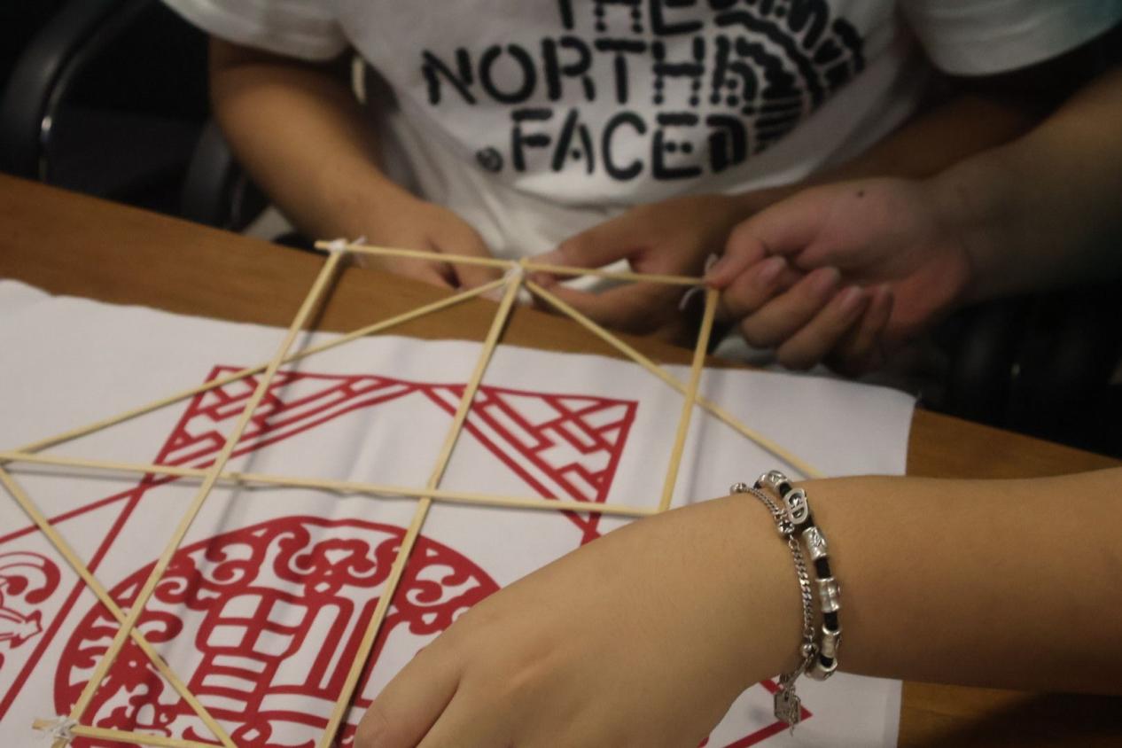 了解過板鷂風箏的歷史背景之后,同學們開始興致勃勃的討論起風箏的制作過程。大家分組合作,互相幫助,從選材到制作,每一步都親力親為。盡管過程中遇到了不少挑戰,如骨架不夠穩固、骨架連接困難等,但學生們并沒有氣餒,而是相互鼓勵,共同解決問題。經過幾個小時的努力,一個個色彩斑斕、多姿多彩的板鷂風箏終于在學生們的手中誕生了。