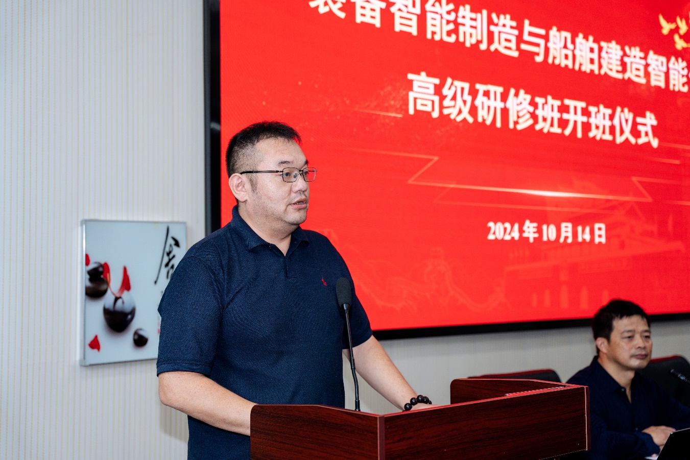 翟純純書記首先對(duì)參訓(xùn)學(xué)員的到來表示熱烈歡迎,并強(qiáng)調(diào)了研修班在推動(dòng)船舶與海洋裝備智能制造領(lǐng)域人才培養(yǎng)中的重要作用。他指出,本次研修班得到了多方的高度重視,旨在為我國該領(lǐng)域培育更多具備高層次、專業(yè)技能的人才。通過系統(tǒng)的理論學(xué)習(xí)、深入的課堂討論以及實(shí)地考察,翟純純希望每位學(xué)員都能及時(shí)更新知識(shí)體系,提升實(shí)踐能力。他同時(shí)對(duì)學(xué)員們提出了四點(diǎn)要求,鼓勵(lì)大家全程參與、積極互動(dòng)、認(rèn)真完成作業(yè),并持續(xù)學(xué)習(xí)應(yīng)用,預(yù)祝培訓(xùn)取得圓滿成功。