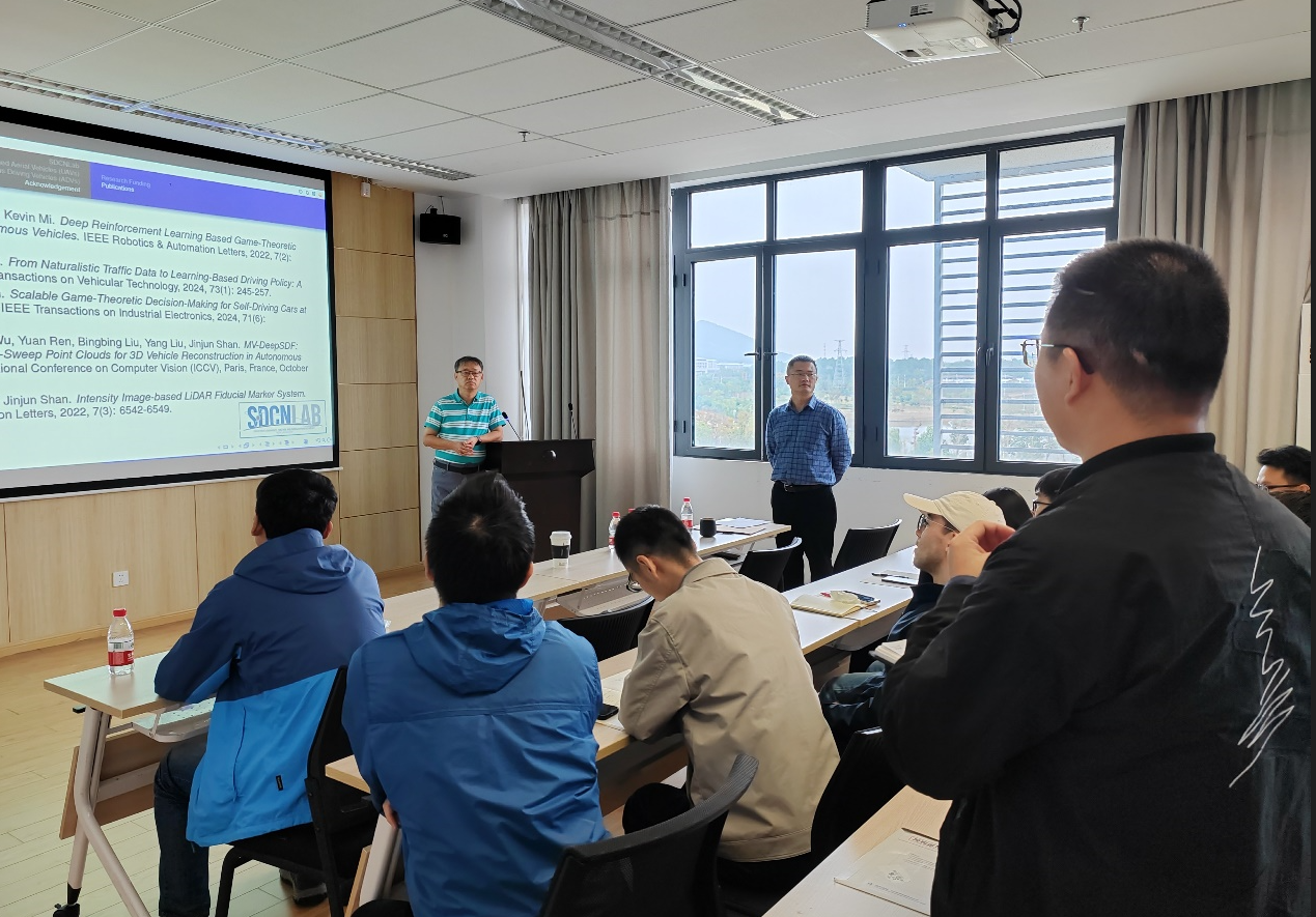 陜晉軍院士在機(jī)械工程學(xué)院報(bào)告廳做了題為“智能自主無人系統(tǒng)的動(dòng)力學(xué)及控制”的精彩講座。機(jī)械工程學(xué)院院長張建教授主持本次講座,機(jī)械工程學(xué)院青年教師、研究生和部分校內(nèi)同行參加本次講座。 其中,陜晉軍教授介紹了團(tuán)隊(duì)近期在無人機(jī)和無人駕駛兩個(gè)領(lǐng)域取得的主要進(jìn)展,詳細(xì)講解了無人機(jī)的動(dòng)力學(xué)建模和控制器設(shè)計(jì)、多智能體的在線學(xué)習(xí)與決策設(shè)計(jì)、仿真與實(shí)驗(yàn)設(shè)計(jì)等研究,同時(shí)解答了老師現(xiàn)場提出的問題,獲得在場師生陣陣掌聲。