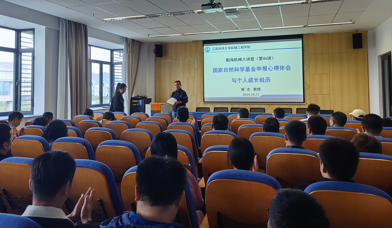 2024年10月31日,機械工程學院在學術報告廳召開國家自然科學基金項目申報輔導交流會。特邀江蘇大學蔡杰教授進行經驗分享與交流,全體基金申報人員參加會議。會議由機械工程學院副院長李磊主持。