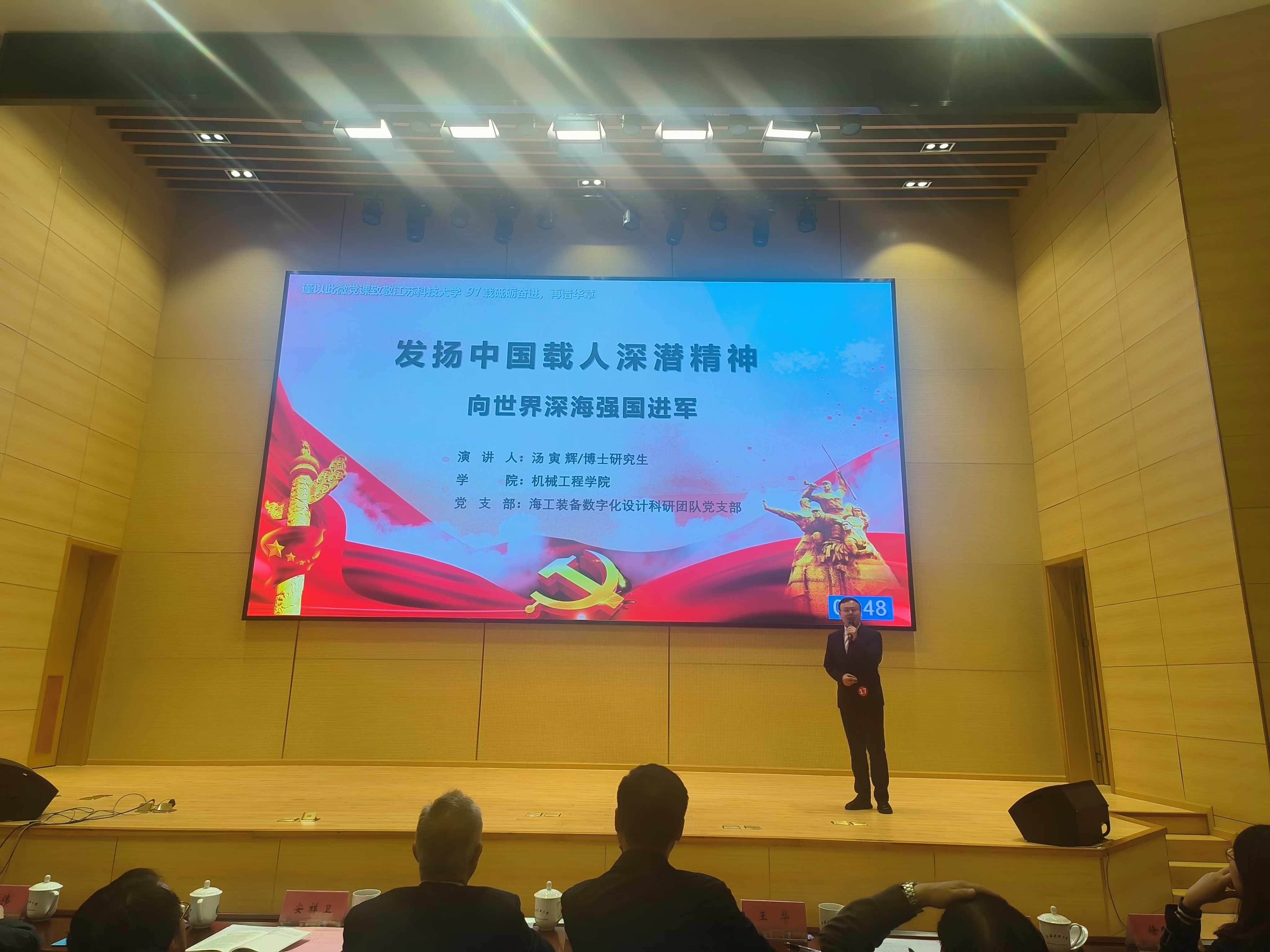 湯寅輝以《發揚中國載人深潛精神,向世界深海強國進軍》為題,帶領大家探索中國在深海科技領域取得的非凡成就,并揭開這些成就背后的偉大精神力量——嚴謹求實、團結協作、拼搏奉獻、勇攀高峰。呼吁所有青年學子,都應該以大國重器背后默默奉獻的江科大前輩為榜樣,用自己的實際行動去踐行中國載人深潛精神,把個人的夢想融入到國家的發展,把青春的熱血灑向深藍大海!
