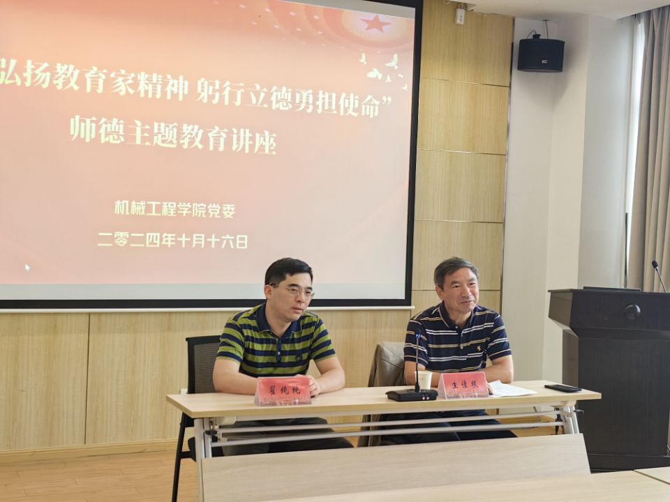 為進(jìn)一步加強(qiáng)學(xué)院師德師風(fēng)建設(shè),弘揚(yáng)教育家精神,機(jī)械工程學(xué)院黨委于10月16日下午組織開展“大力弘揚(yáng)教育家精神 躬行立德勇?lián)姑睅煹聨燂L(fēng)主題教育活動(dòng),并邀請(qǐng)校黨務(wù)專員生佳根教授做師德師風(fēng)專題講座,學(xué)院近三年入職的教師參會(huì),會(huì)議由學(xué)院黨委書記翟純純主持。