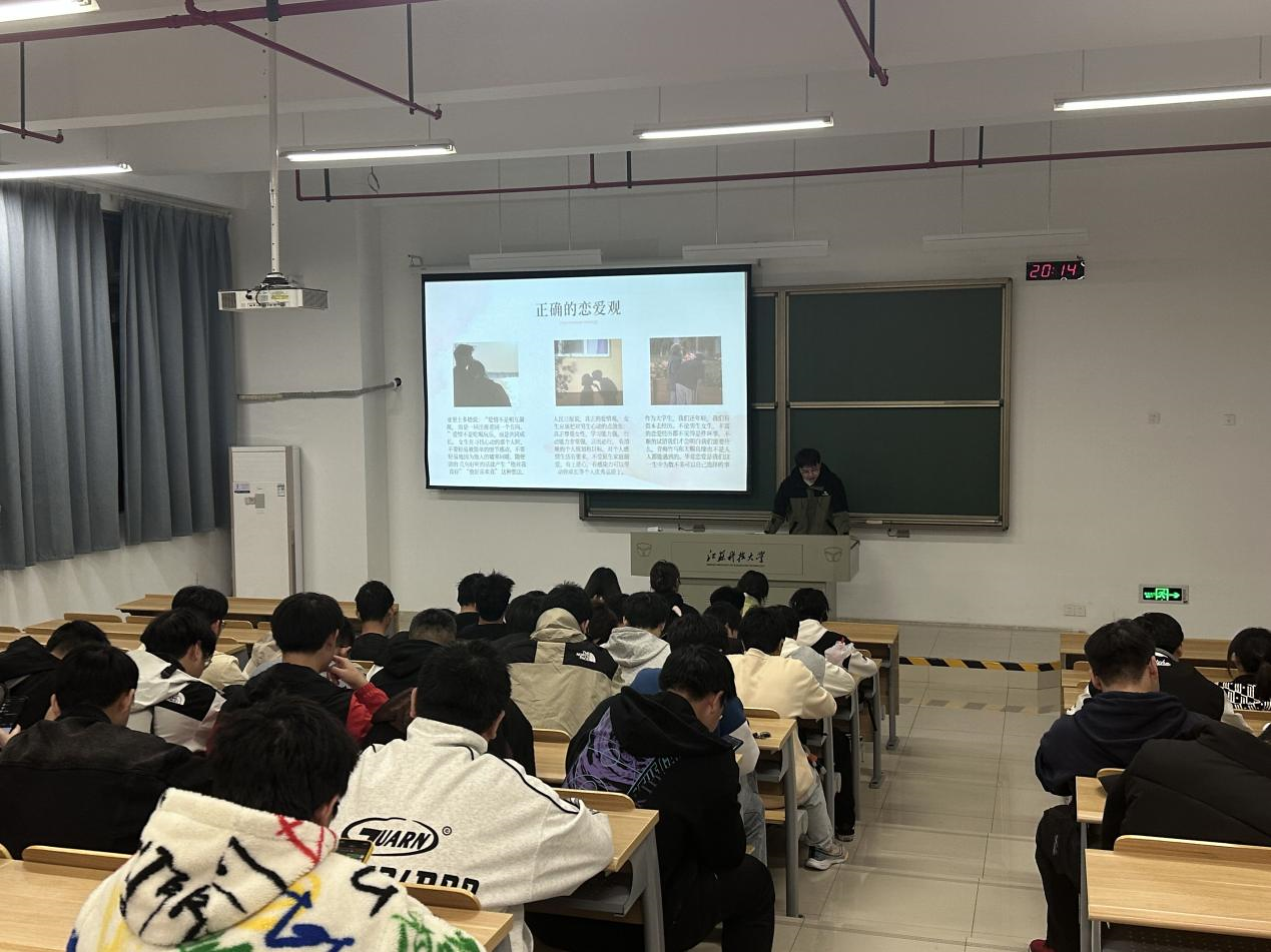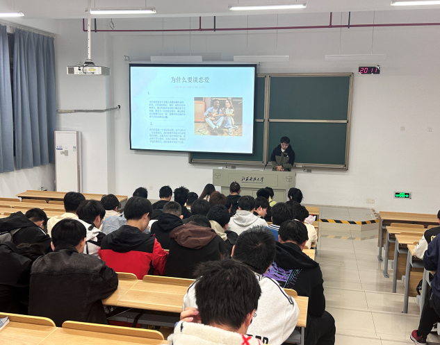 婚戀觀是人生觀的重要組成部分,影響著一個人一生的發展與幸福。對于正值青春年華的大學生而言,樹立正確的戀愛觀?對于情感生活和心理健康至關重要。為了引領同學們在戀愛的海洋里穩健航行,機械工程學院2023級智能制造工程1班、2班于11月11日晚在篤學樓308聯合舉辦了以“大學生正確的戀愛觀”為主題的心理健康班會活動,旨在引導同學們樹立科學的心理健康理念,共同繪制陽光和諧、充滿正能量的校園畫卷。