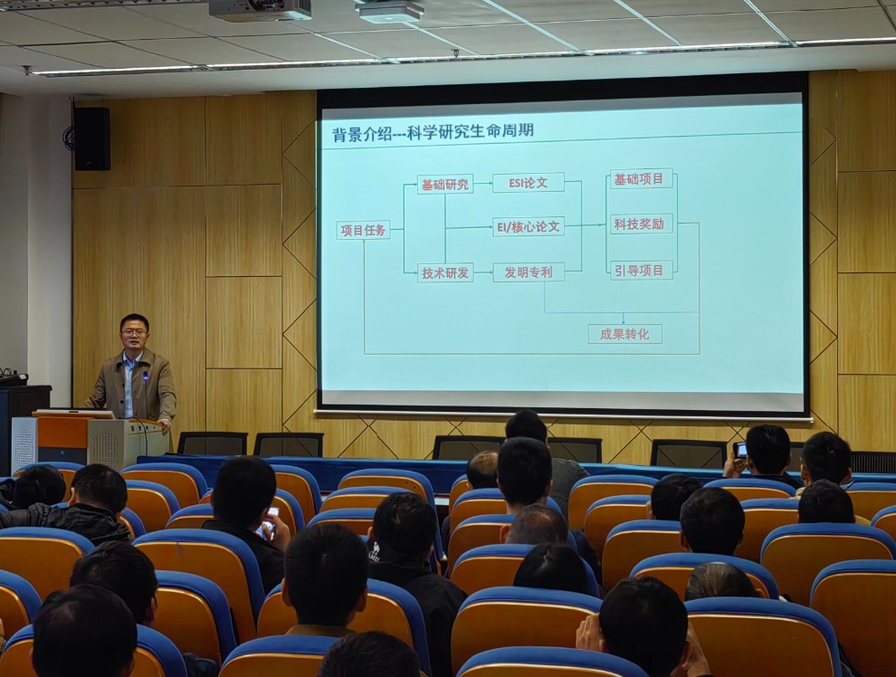 講座中,張建以科學研究生命周期為例,闡述了科研成果獎申報類型及申報渠道,詳細講解了各類科研成果獎的主要工作流程、核心要素,強調技術的先進性、社會效益及發展前景;同時分享報獎材料撰寫的主要步驟、注意事項,強調“成果群”意識,注重成果鏈的積累,關注相關指南,發現規律、利用規律,提前規劃布局。張建還分享了省部級科技獎、專利獎和社會力量獎勵的申報案例,分析了各獎項之間的關聯與不同,并介紹了提高申報成功率的策略。