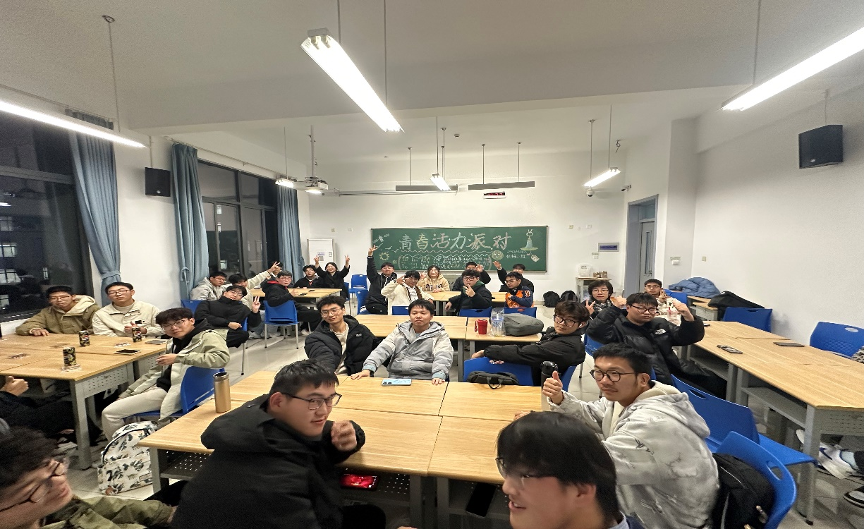 為了打破班級同學的陌生感,促進彼此相互了解,增強班級凝聚力,營造積極向上,團結友愛的班級氛圍。2024年12月12日,機械類二班在明德樓404教室精心籌備了一場以“青春活力派對”為主題的班級活動。
