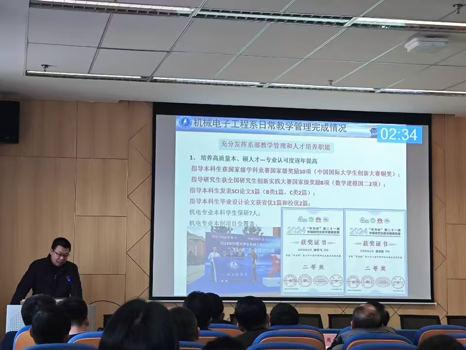 學院首先開展系部考核工作,各系部主任圍繞系部年度工作計劃落實情況、對學院重點工作的貢獻度、當前工作不足分析及改進措施等方面對系部工作開展情況進行了全面匯報。智能制造工程系主任劉金鋒剖析了系部教研教改短板形成原因及下一階段系部的工作規劃,工業設計系主任劉李明介紹了系部管理運行模式以及黨建和業務融合開展情況,機械制造工程系主任晏飛分享了系部在青年教師培養以及課程建設方面的先進做法,機械電子工程系主任王佳展示了系部在專業建設方面的顯著成果,機械設計系主任劉志強匯報了骨干教師培養以及課程思政建設經驗。
