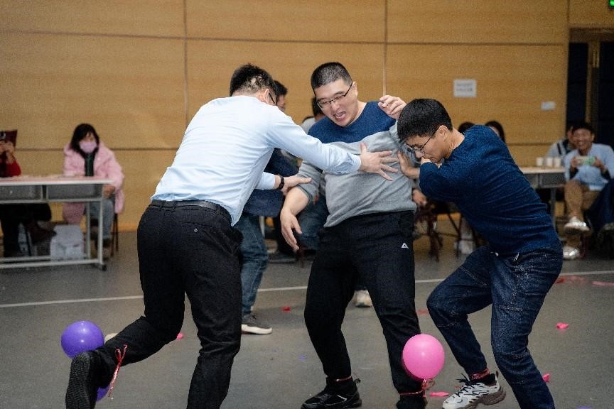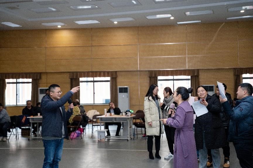 在互動游戲環節,既有考驗反應速度的“五毛一塊”“金蛇狂舞”,也有需要團隊合作的“腰纏萬貫”“你比我猜”“攜手向前沖”。游戲種類繁多,各位老師積極參與,場面十分熱烈,同時各種夸張場面引得現場笑聲不斷。
