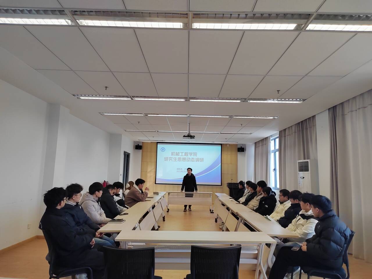為深入了解研究生思想動態,推動新學期工作高效開展,機械工程學院于2月20日下午在學院445會議室開展研究生思想動態調研座談會,學院輔導員尹子琪老師主持,各班級研究生代表參會。
