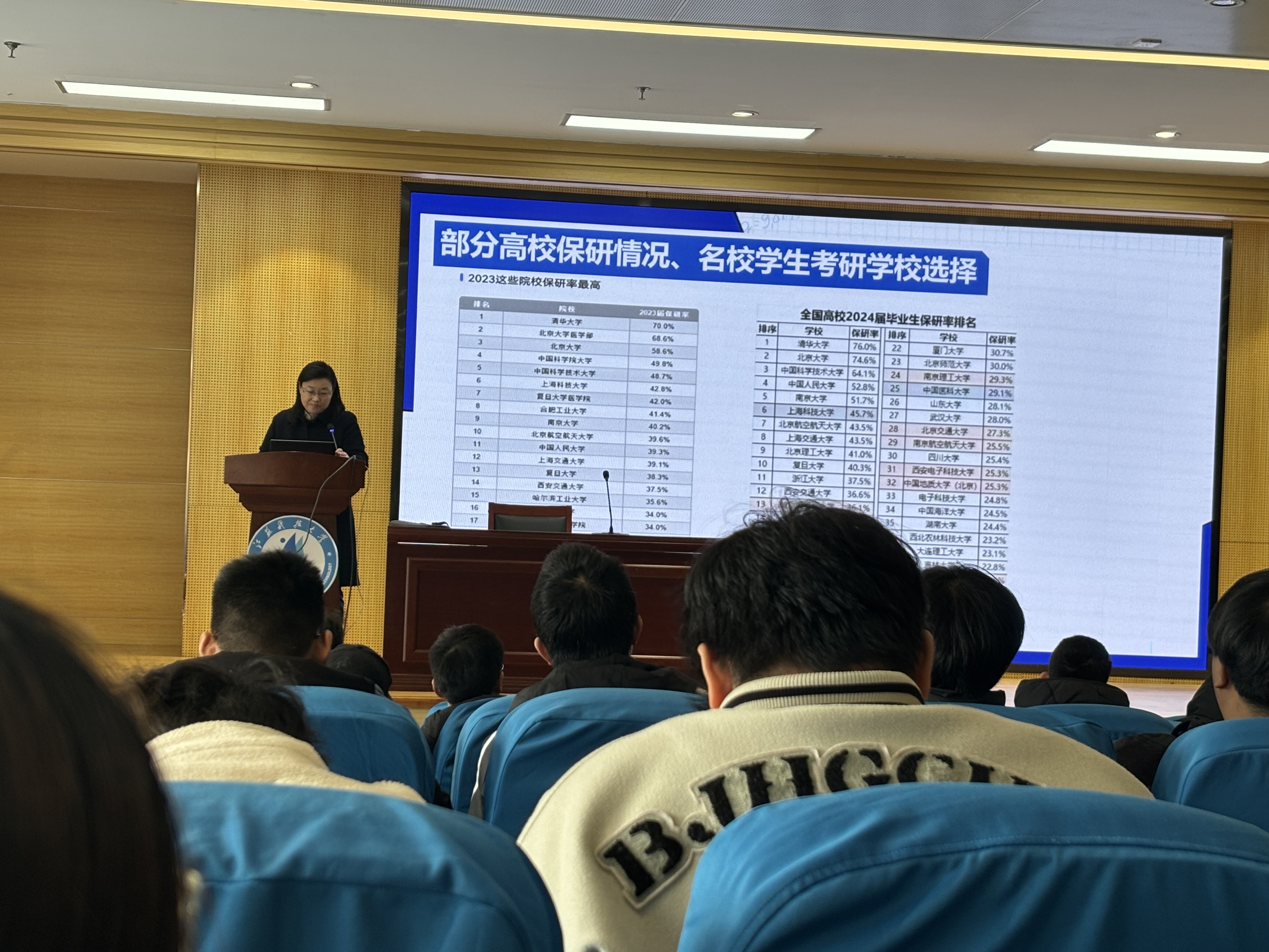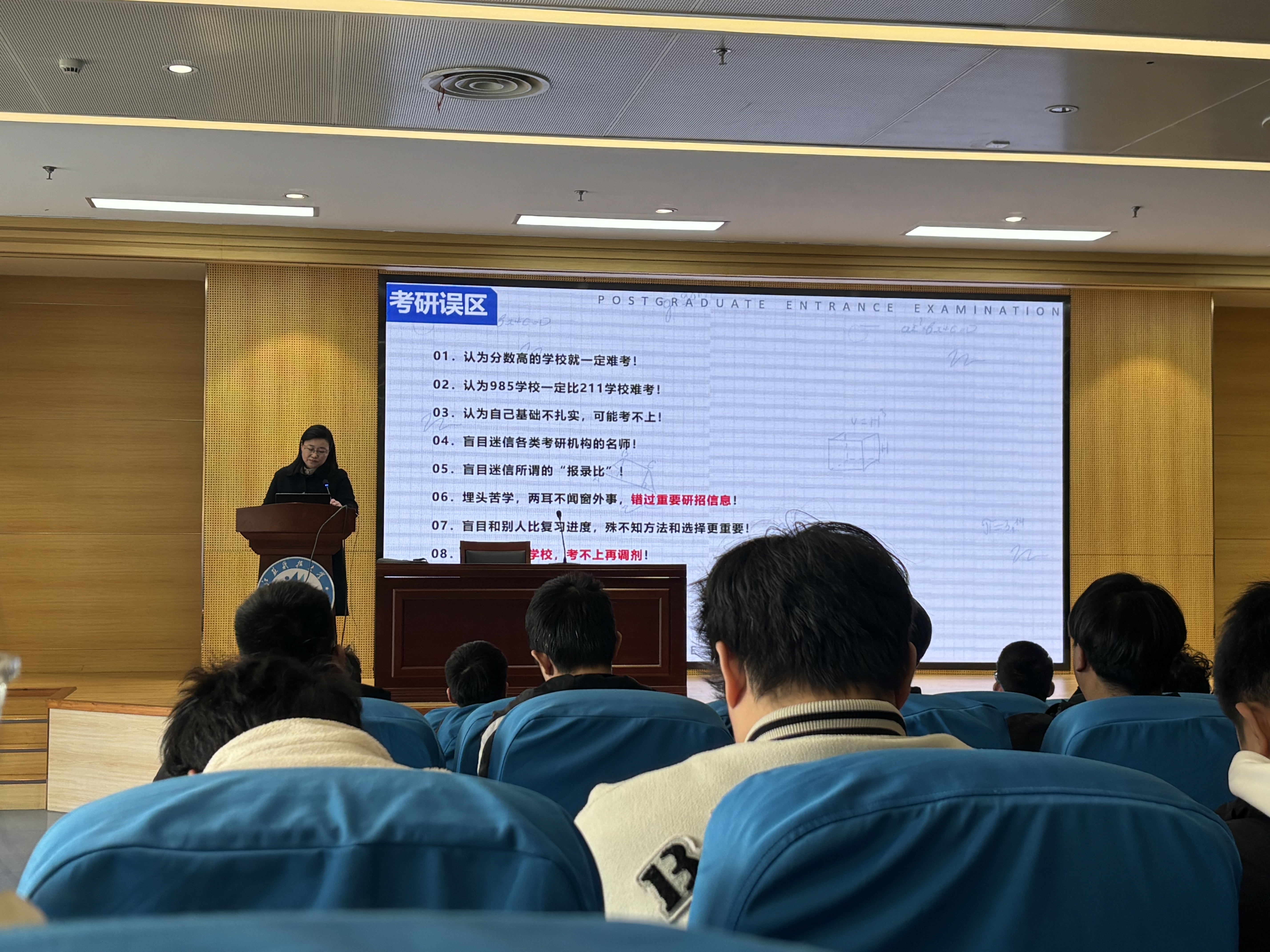 張黎明以“考研形勢分析”為主題,表明研究生學歷在崗位晉升、薪資待遇及科研資源獲取上具有顯著優勢,尤其對技術研發類崗位而言,“學歷是職業長期發展的‘加速器’”。結合企業招聘數據,她指出智能制造、機械與人工智能、材料科學的交叉學科等領域對碩士及以上學歷的要求占比很大。此外,她通過軟科學科排名數據的分析,提醒同學們在進行院校及專業選擇是要綜合考慮地域與行業聯動、導師資源與培養模式、學科實力與科研平臺等重要因素,既仰望星空又腳踏實地,選擇最適合自己的院校專業。