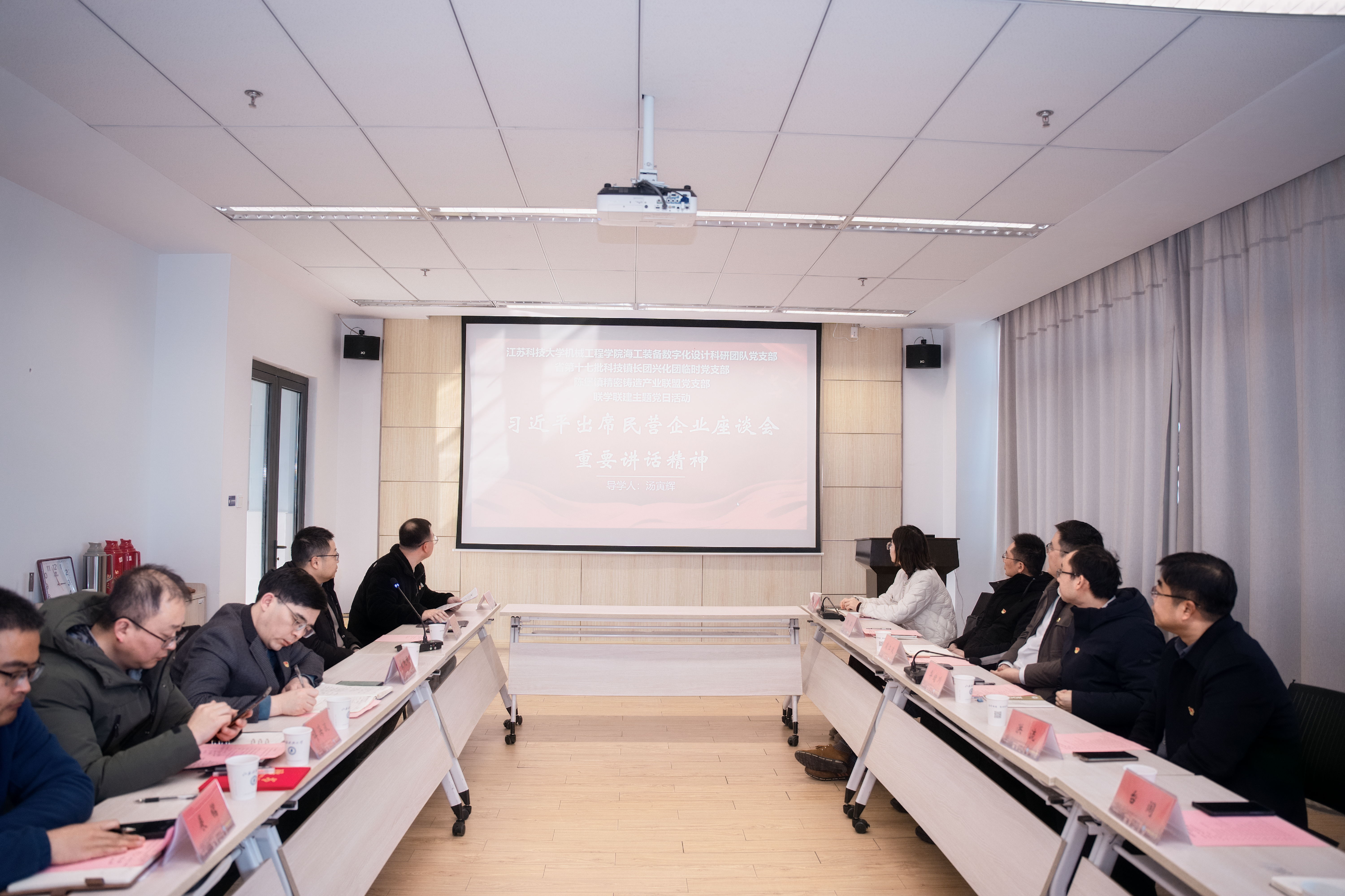 海工裝備數字化設計科研黨支部博士生黨員湯寅輝領學,大家共同學習了習近平總書記在民營企業家座談會上的講話,興化市委組織部綜合考核科科長徐燕,學院黨委副書記譚海波,科技鎮長團團員、中科院金屬所正高級工程師臺闖分別圍繞人才引進、學生培養、創新創業等發言。