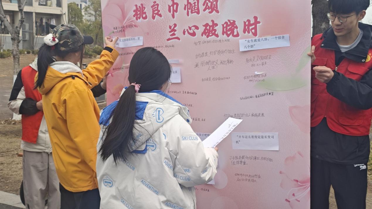 何須淺碧深紅色,自是花中第一流。為迎接婦女節的到來,為女性朋友們送上祝福。江蘇科技大學機械工程學院星火服務社于3月7日中午在長山校區西苑食堂門口舉辦了一場以“桃良巾幗頌,蘭心破曉時”為主題的婦女節活動。該活動旨在打破社會中某些群體對女性的刻板印象,幫助女性朋友打破質疑、突破自我,同時為即將到來的婦女節提前奏響了溫暖贊歌。
