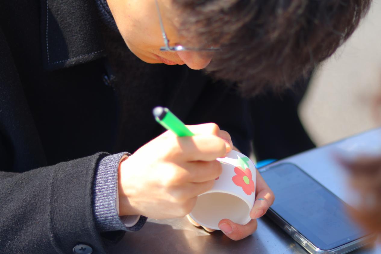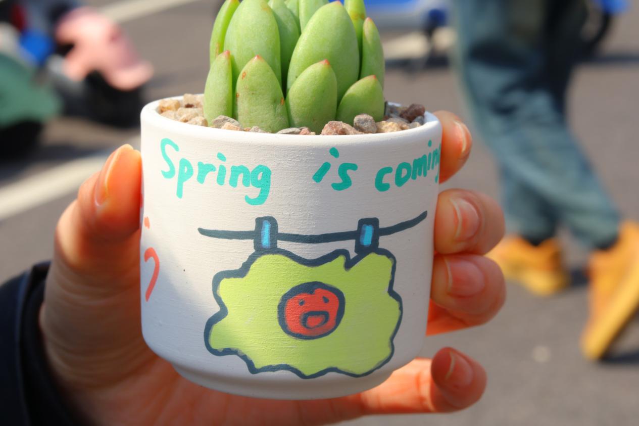 同學(xué)們迫不及待地投入到創(chuàng)作中,充分發(fā)揮奇思妙想。有的同學(xué)用細(xì)膩的筆觸在花盆上繪出校園標(biāo)志性建筑,讓校園風(fēng)景與多肉相映成趣;有的則用明亮活潑的色彩,畫上可愛的卡通形象,為花盆增添俏皮可愛的氛圍;還有同學(xué)在花盆上寫下了對(duì)自己的祝愿,使其成為獨(dú)一無二的春日擺件。