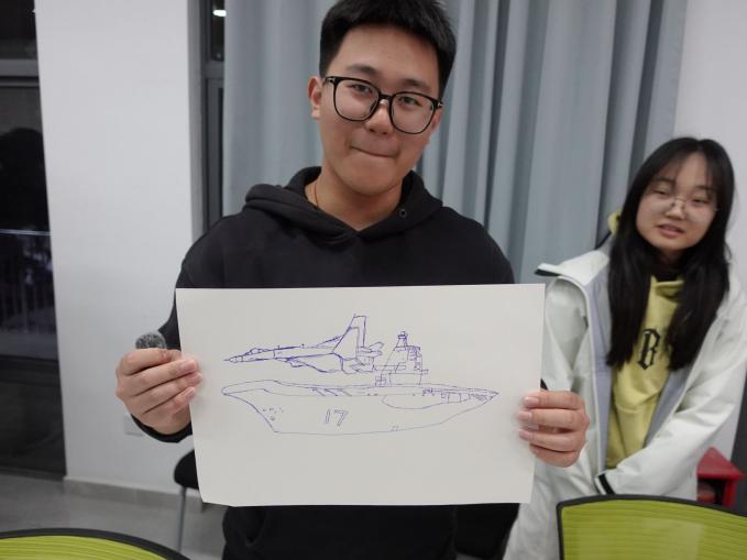 在充滿藝術氣息的活動現場,同學們用以畫筆為媒,將文理大樓的典雅輪廓、航母劈波斬浪的雄姿、海韻湖的鎏金落日、“蓋澆飯大學”的趣味圖景定格成畫作。調色板上躍動的斑斕,正映照著每個人心中不可復制的青春校園。