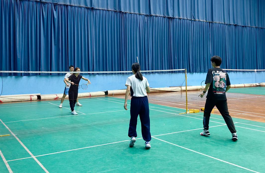 第二比賽日師生男雙比賽將比賽推向高潮,由學(xué)生組最強組合對陣教師組最強組合,雙方在前兩局戰(zhàn)平的情況下展開第三局的激烈競技。學(xué)生組在開局初連續(xù)得分,老師組明顯體力不支,兩位學(xué)生一路領(lǐng)先直至11:6,雙方易邊再戰(zhàn)。交換場地之后的老師在爭奪每一球時都更顯細(xì)膩,在網(wǎng)前連續(xù)追分,球場邊也不斷傳出加油吶喊,最終教師組以24:22的驚險比分獲得勝利。