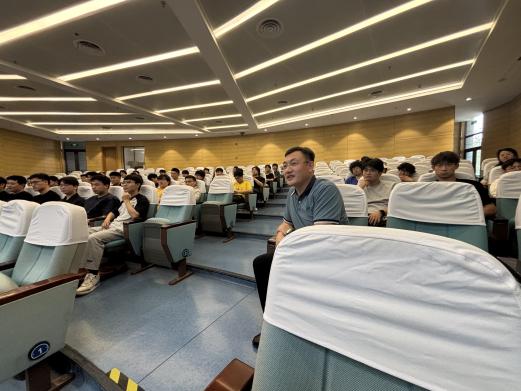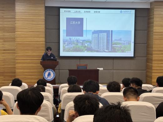 隨后,5位2025屆考研成功上岸的學(xué)長依次登臺,帶來了精彩紛呈的備考經(jīng)驗分享。他們分別是被河北工業(yè)大學(xué)錄取的王世豪、考入南京理工大學(xué)的張慶達(dá)、被江蘇科技大學(xué)錄取的肖豪杰、成功上岸湖南大學(xué)的袁志文,以及考入江蘇大學(xué)的丁偉豪。5位學(xué)長傾囊相授,分享內(nèi)容涵蓋多個關(guān)鍵維度。從精準(zhǔn)的擇校技巧,到高效的初試高分策略;從各學(xué)科的復(fù)習(xí)方法,到跨專業(yè)備考的實用技巧;從復(fù)試階段的心態(tài)調(diào)整,到面試環(huán)節(jié)的制勝要點,全方位為學(xué)弟學(xué)妹們答疑解惑。他們毫無保留的經(jīng)驗分享,不僅帶來了實用的備考方法與技巧,更傳遞出堅定的信念,讓在場同學(xué)深受鼓舞,備考信心倍增。互動環(huán)節(jié)中,李文達(dá)老師圍繞專業(yè)課復(fù)習(xí)重點、復(fù)試失利常見原因等問題深入提問。在一來一往的交流中,學(xué)長們分享了許多備考過程中攻堅克難的奮斗故事,這些真實經(jīng)歷為同學(xué)們提供了寶貴的借鑒,也讓大家對考研之路有了更全面、更深刻的認(rèn)識。