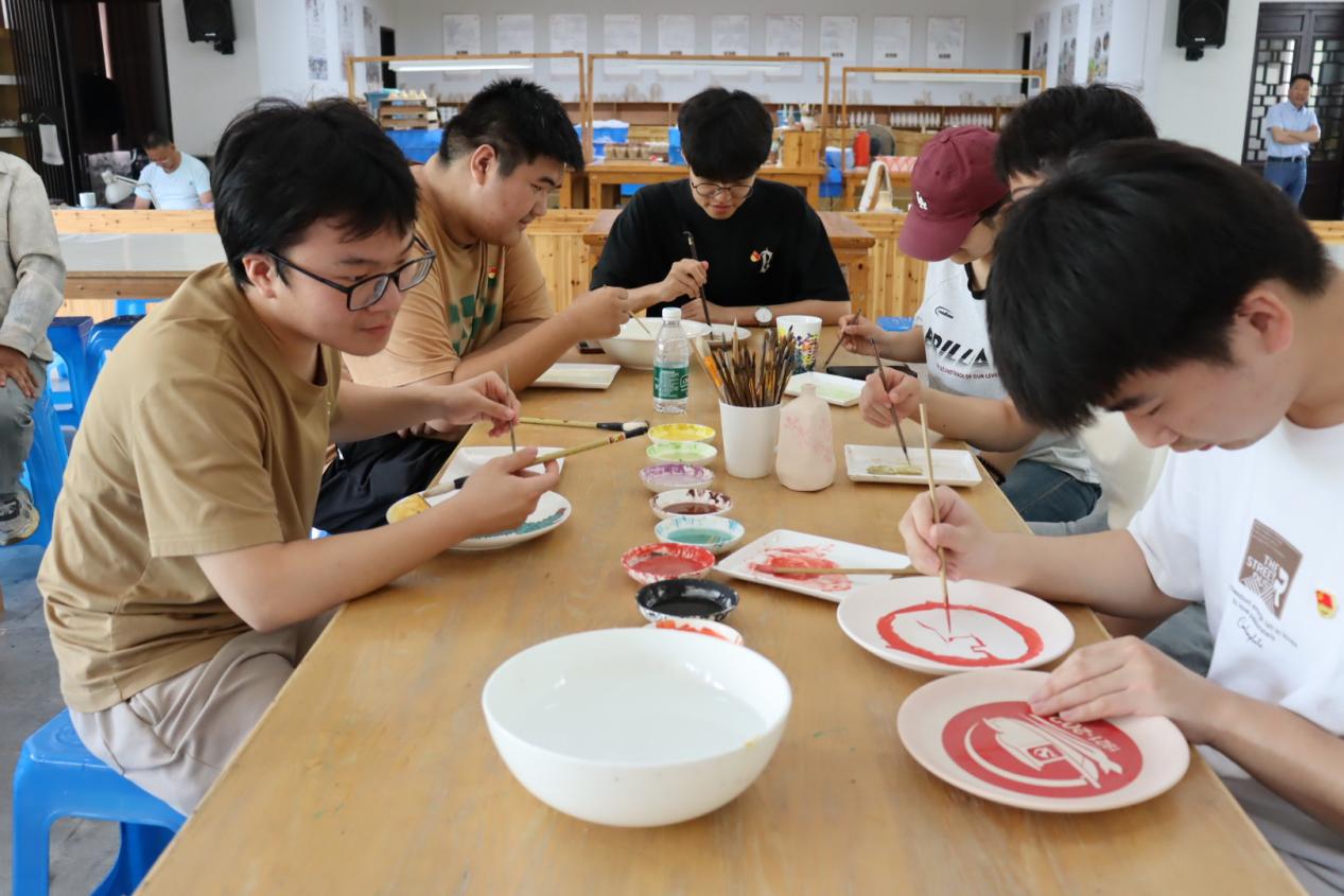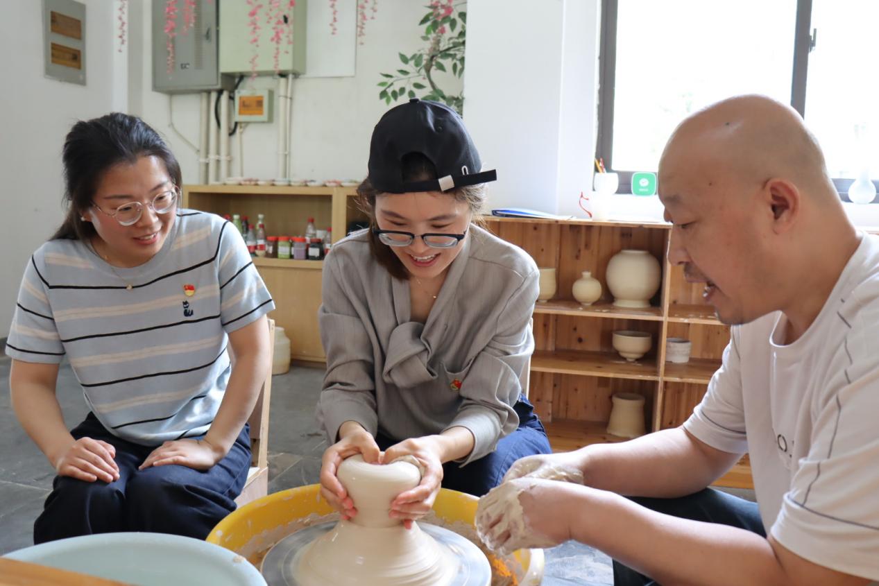 隨后,師生們來到大師工作室,親身體驗陶瓷制作的樂趣。在陶瓷大師的耐心指導下,大家紛紛動手,嘗試拉坯、塑形、繪畫等工藝。通過這種‘做中學’的方式,不僅讓思政教育更加鮮活,更是讓師生們體會到工匠精神不僅需要理論領悟,更要通過實踐內化于心。