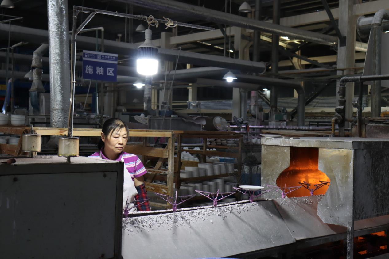 隨后,師生們走進高淳陶瓷智能化生產車間,近距離觀摩陶瓷從原料制備到成型燒制的全流程。現代化生產線與傳統工藝的深度融合,讓同學們深刻體會到“守正創新”的實踐內涵。工人們專注的神情、嚴謹的操作,無不彰顯著對品質的極致追求,這也讓師生們對 “匠心” 二字有了更為直觀的認識和深刻的理解。