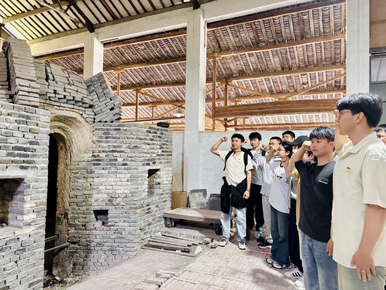 在具有百年歷史的古窯遺址前,全體師生莊嚴宣誓:“弘揚工匠精神,勇攀技術高峰,以青春之力賦能中國智造!”鏗鏘誓言與古老窯洞交相輝映,傳遞出新時代青年科技工作者傳承匠心、跟黨奮斗的堅定信念。
