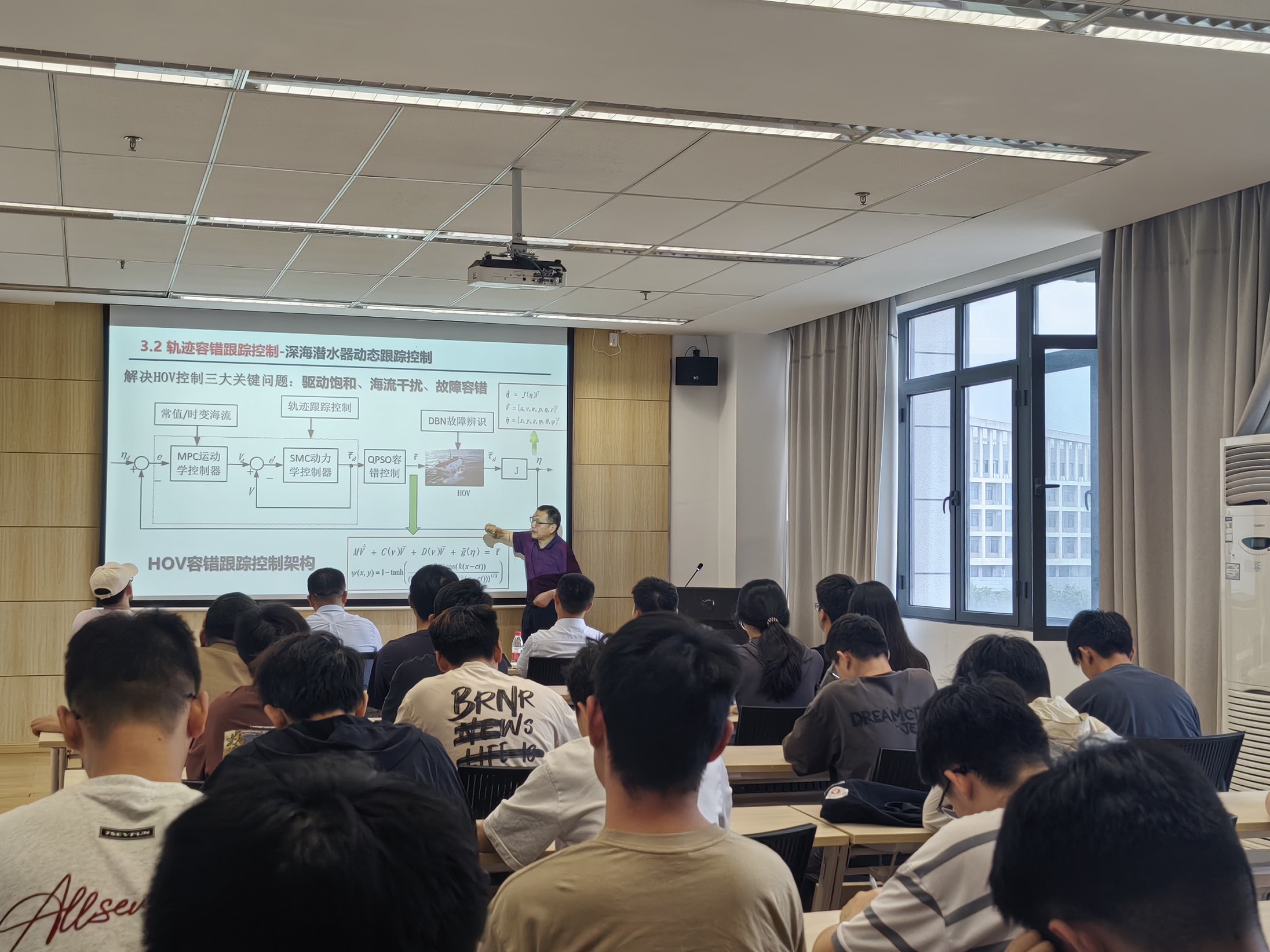 朱教授圍繞深海載人潛水器可靠性控制問題,系統闡述了深海潛水器故障檢測技術,深入剖析了推進系統故障辨識理論方法、試驗系統構建、容錯跟蹤控制與拋載自救技術的機理。同時,朱教授結合團隊科研,分享了推進系統故障檢測隔離的創新策略、深度學習賦能故障辨識的技術突破,以及模型預測容錯跟蹤控制技術的最新成果,全方位展現了深潛器系統的成就與探索。