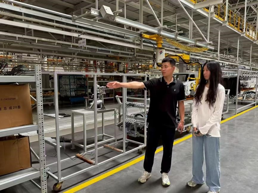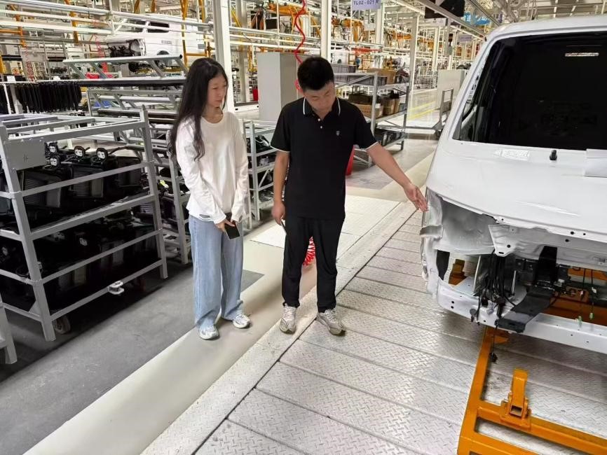 實(shí)踐團(tuán)成員王鶴潔來(lái)到遼寧華晨寶馬設(shè)計(jì)院參觀調(diào)研,開啟汽車制造探索之旅。師傅帶她依次參觀了沖壓、焊裝、涂裝以及總裝車間,四大車間環(huán)環(huán)相扣,每一步都凝聚著技術(shù)與匠心。對(duì)她來(lái)說,作為一名大一同學(xué),這不僅是一次社會(huì)實(shí)踐,也是一次專業(yè)認(rèn)知,讓她清晰地看到了工業(yè)設(shè)計(jì)在汽車制造領(lǐng)域的應(yīng)用與價(jià)值,所感悟的工匠精神也會(huì)激勵(lì)著她在工業(yè)設(shè)計(jì)的道路上學(xué)習(xí)探索。
