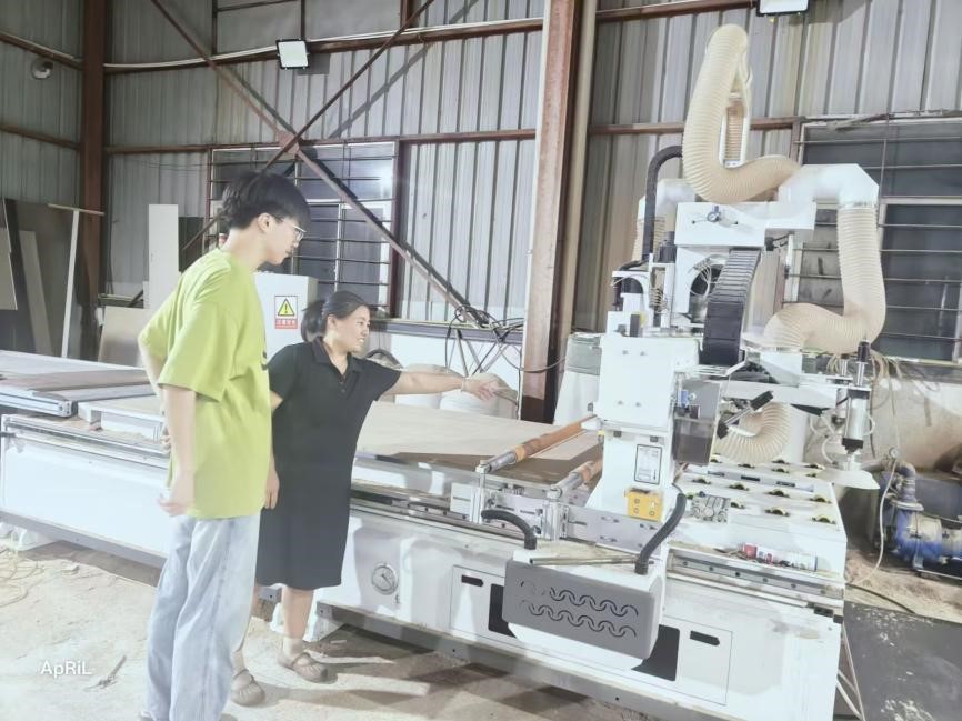 實(shí)踐團(tuán)成員李健來(lái)到鹽城市特昊全屋定制家具廠實(shí)踐。在這里他跟隨匠人師傅學(xué)習(xí)了開料機(jī)、封邊機(jī)的運(yùn)行,這是傳統(tǒng)木匠與機(jī)械專業(yè)的碰撞,是匠人對(duì)細(xì)節(jié)的極致追求。在真正上手操作后,他明白這是對(duì)“惜木如金”的傳統(tǒng)、“以人為本”的初心的秉持,是對(duì)“物盡其用”古老箴言的踐行,這不僅是堅(jiān)守匠心品質(zhì)的體現(xiàn),更是對(duì)“精益求精”的工匠精神的最好詮釋。