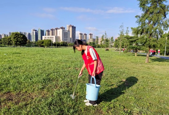 在公園的草坪區域,志愿者們手持垃圾夾和垃圾袋,像一群敏銳的“偵察兵”。他們緩緩前行,眼睛緊緊盯著地面,不放過任何一個隱藏在草叢中的垃圾。一個被丟棄的塑料瓶、一張揉皺的傳單,甚至是小小的煙頭,都被他們精準地夾起,放入垃圾袋中。一位志愿者一邊清理一邊說:“這些垃圾影響美觀,還可能對土壤和植物造成傷害,我們必須把它們清理干凈。”