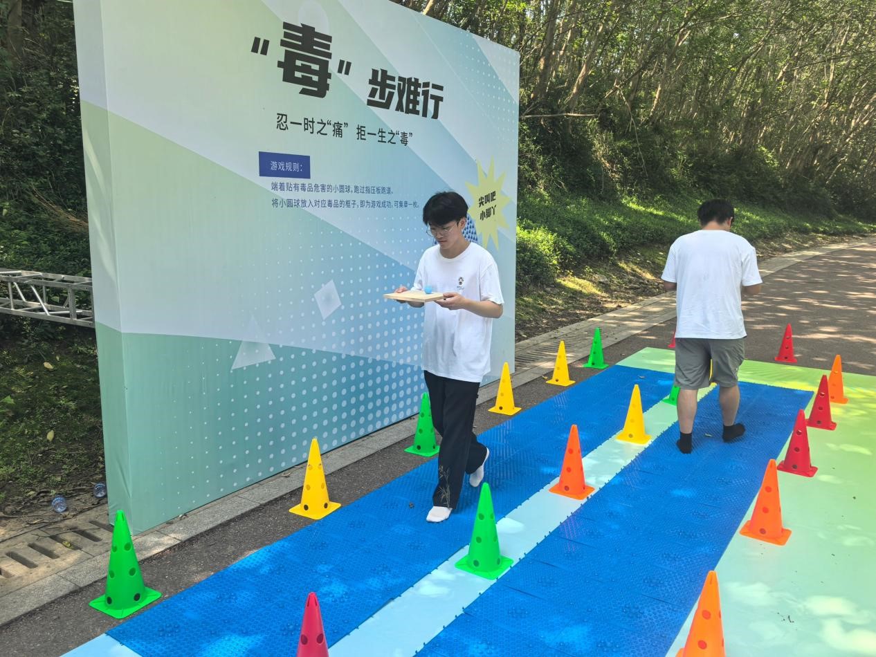 關卡地面繪制指令圖案,標注“毒品陷阱→繞開!”“健康通道→前行!”等指引。參與者需嚴格按照“手摸健康標識、腳踩安全區域”的規則前進,若誤觸“毒品陷阱”區域,則需重新開始并回答一道禁毒問題。通過游戲,讓“遠離毒品誘惑”變為具體行動。