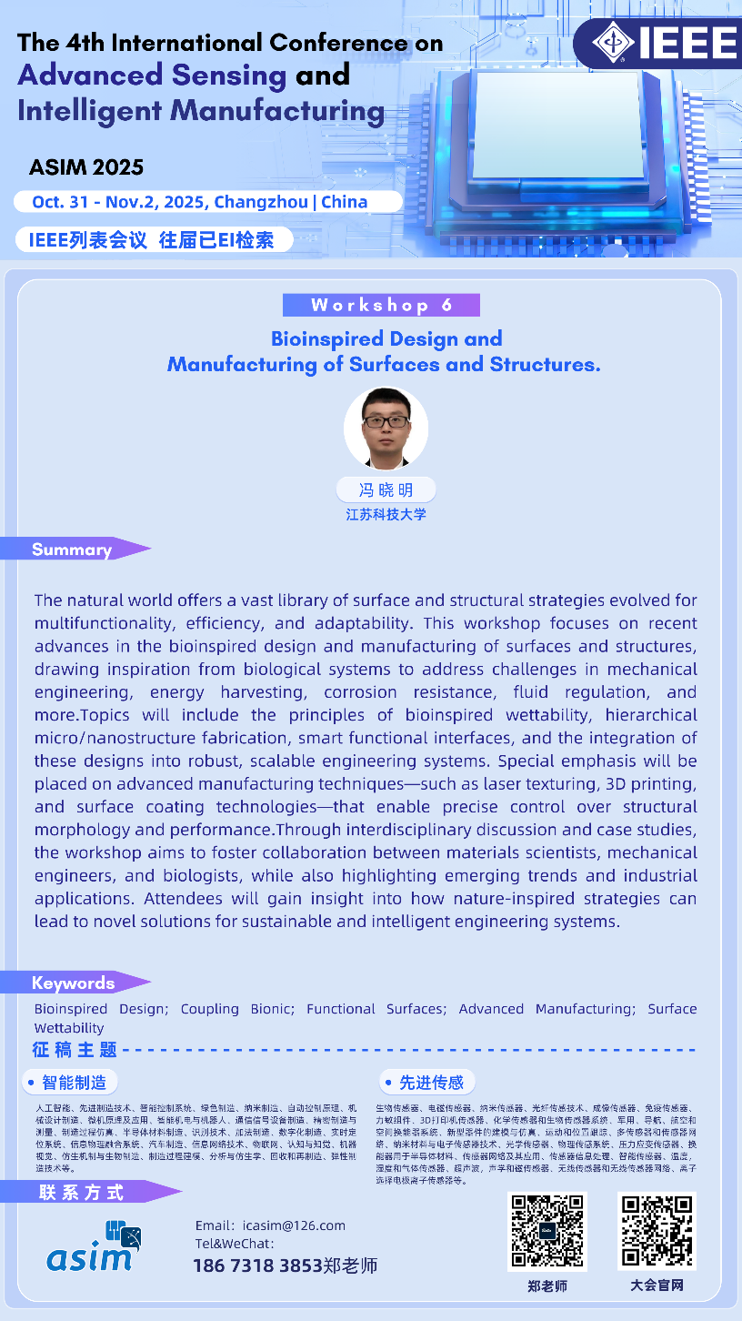 本次會議邀請我院張建教授作為組委會的Publicity Chair,我院馮曉明副教授作為大會分論壇的Workshop 6 Chair。誠摯邀請國內(nèi)外從事先進(jìn)傳感、智能制造及相關(guān)領(lǐng)域研究的專家學(xué)者踴躍投稿,參會交流最新研究成果。